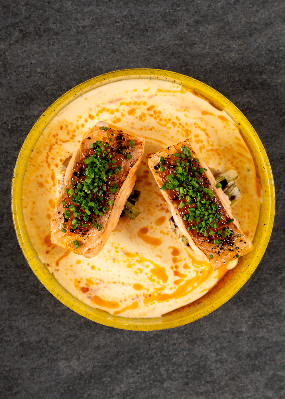 - Vid sidan om: grillad Sandefjordsås med yuzujuice, blandad med sobrasadaolja